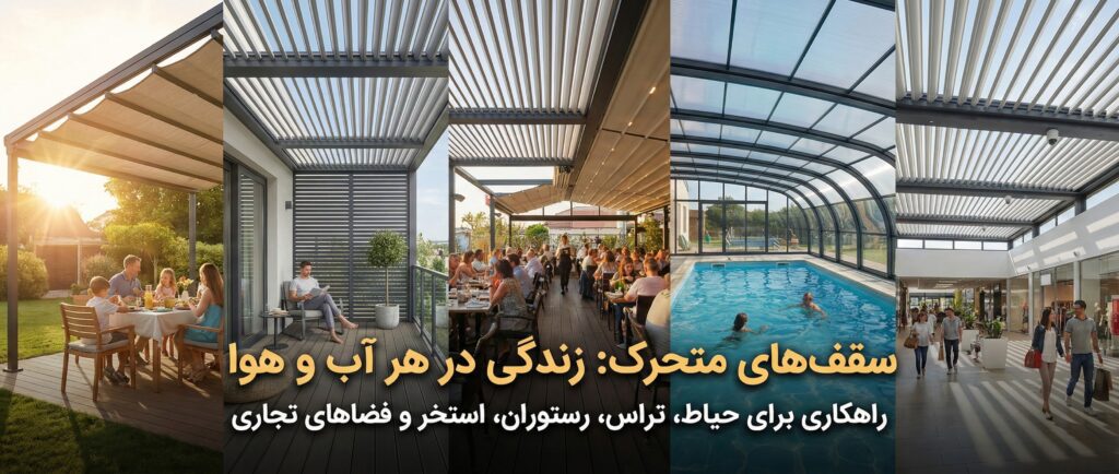 انواع سقف متحرک چیست؟ سقفهای متحرک راهکاری انعطافپذیر برای کنترل نور، دما و استفاده چندمنظوره از فضاهای باز و نیمهباز
