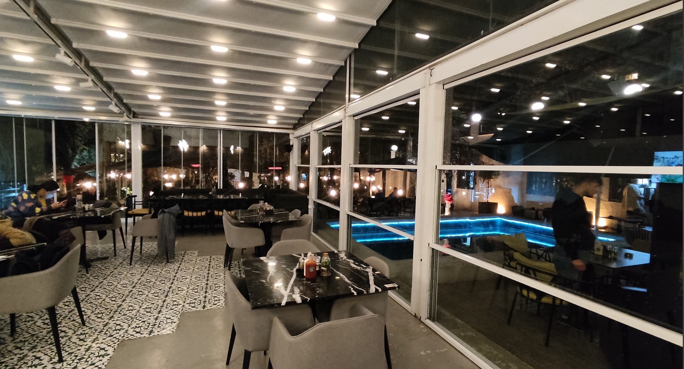 - انعطافپذیری بالا: این ترکیب، به رستوران امکان میدهد که بر اساس شرایط آب و هوایی، فضای داخلی را به راحتی تغییر دهد.