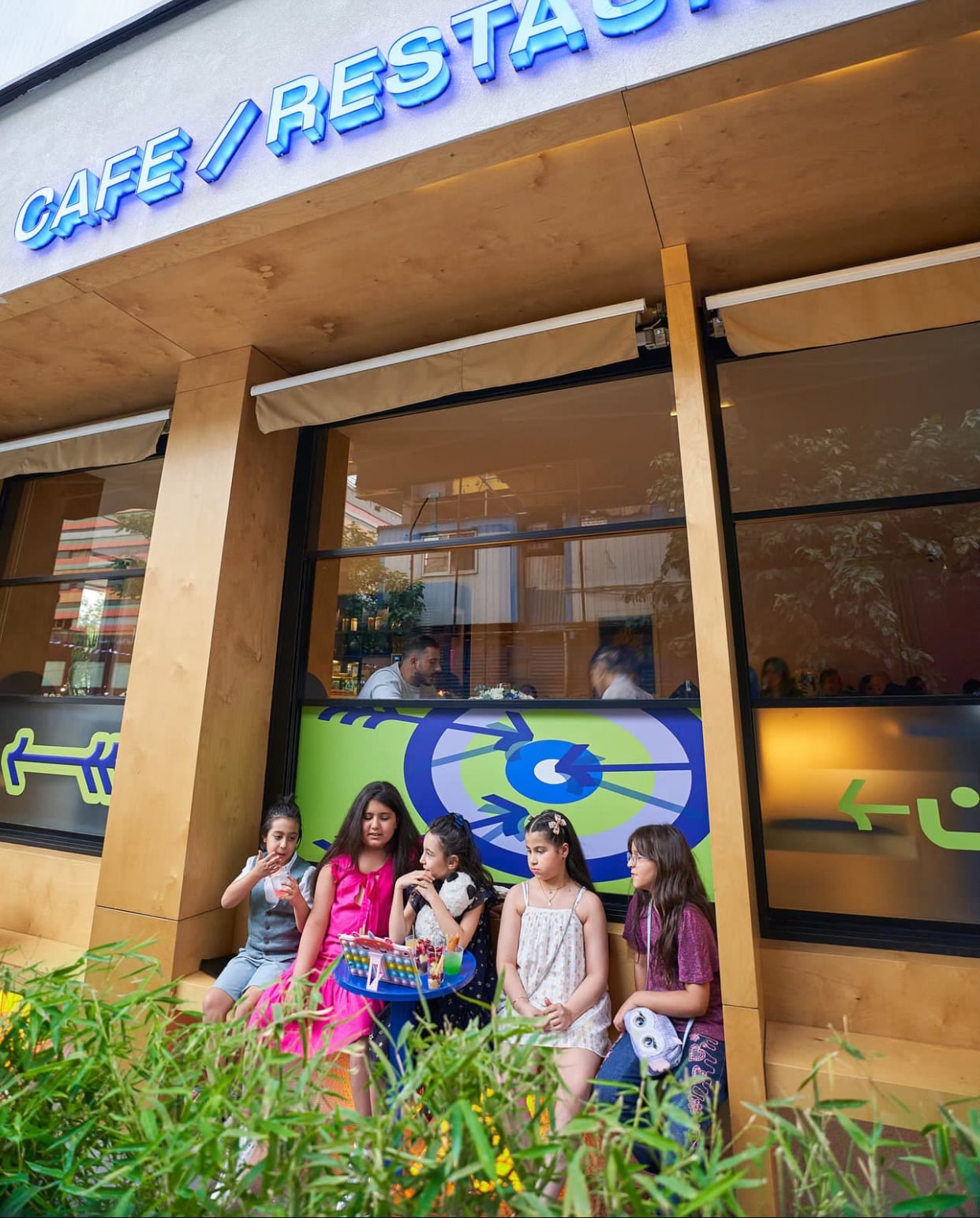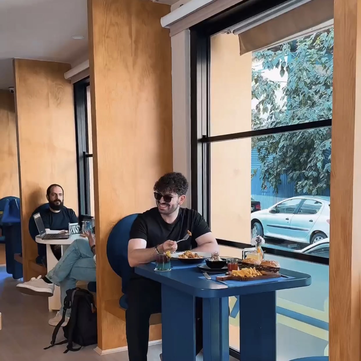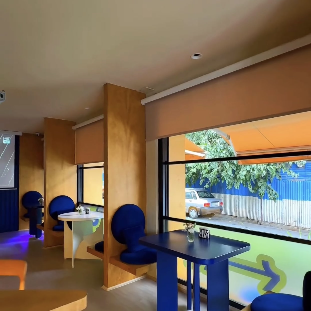 - ایجاد فضای نشستن بیرونی: در بیرون رستوران و در سمت پیادهرو زیر پنجرههای گیوتینی، فضای نشستن با میز برای مشتریان بیرونی در نظر گرفته شده که تجربهای متفاوت از صرف غذا را برای آنها فراهم میکند.